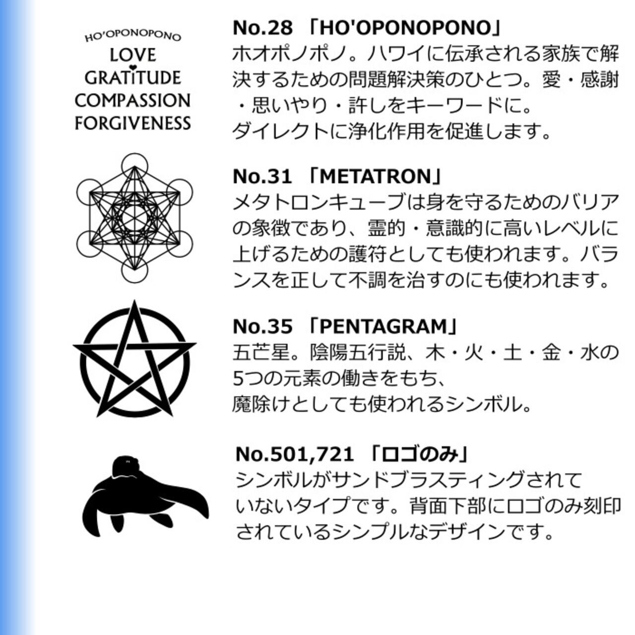 一般的に販売されているブルーボトルとは異なり、私たちのブルーボトルには、意図をもった「シンボル」が刻まれています。これは、サンドブラスティング加工という特殊な技術で、専門の職人が一本一本丁寧に刻印しています。「シンボル」は10種類以上あり、「生命」「愛」「パワー」など、それぞれ固有の意図をもっています。